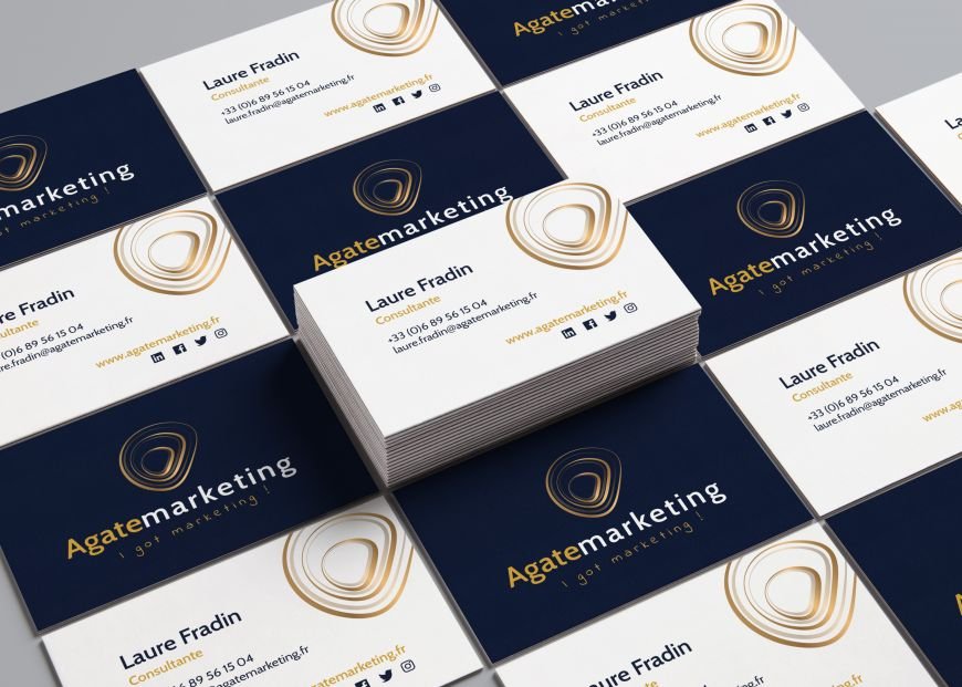 J’ai réalisé le logo et les cartes de visite d’Agate Marketing qui accompagne les entreprises dans la construction & le déploiement d’une stratégie marketing.