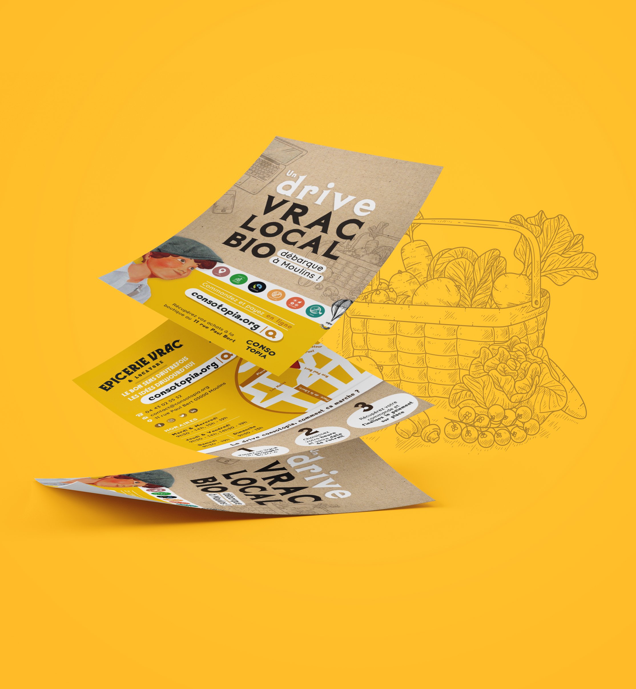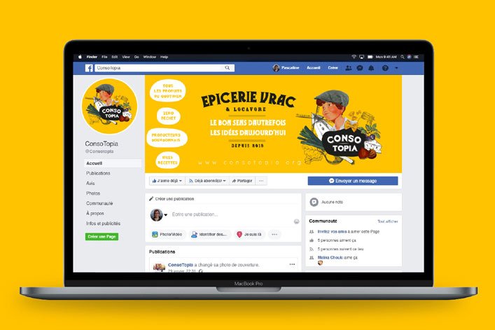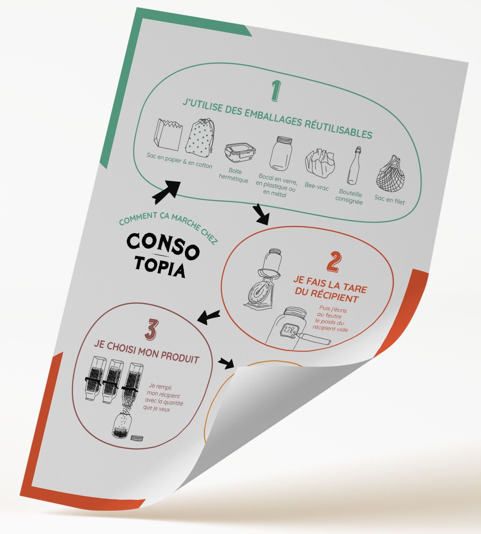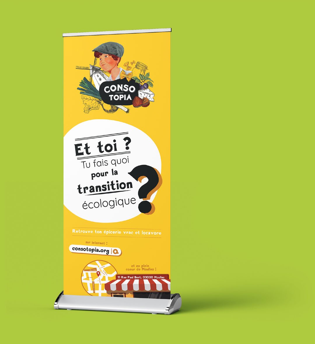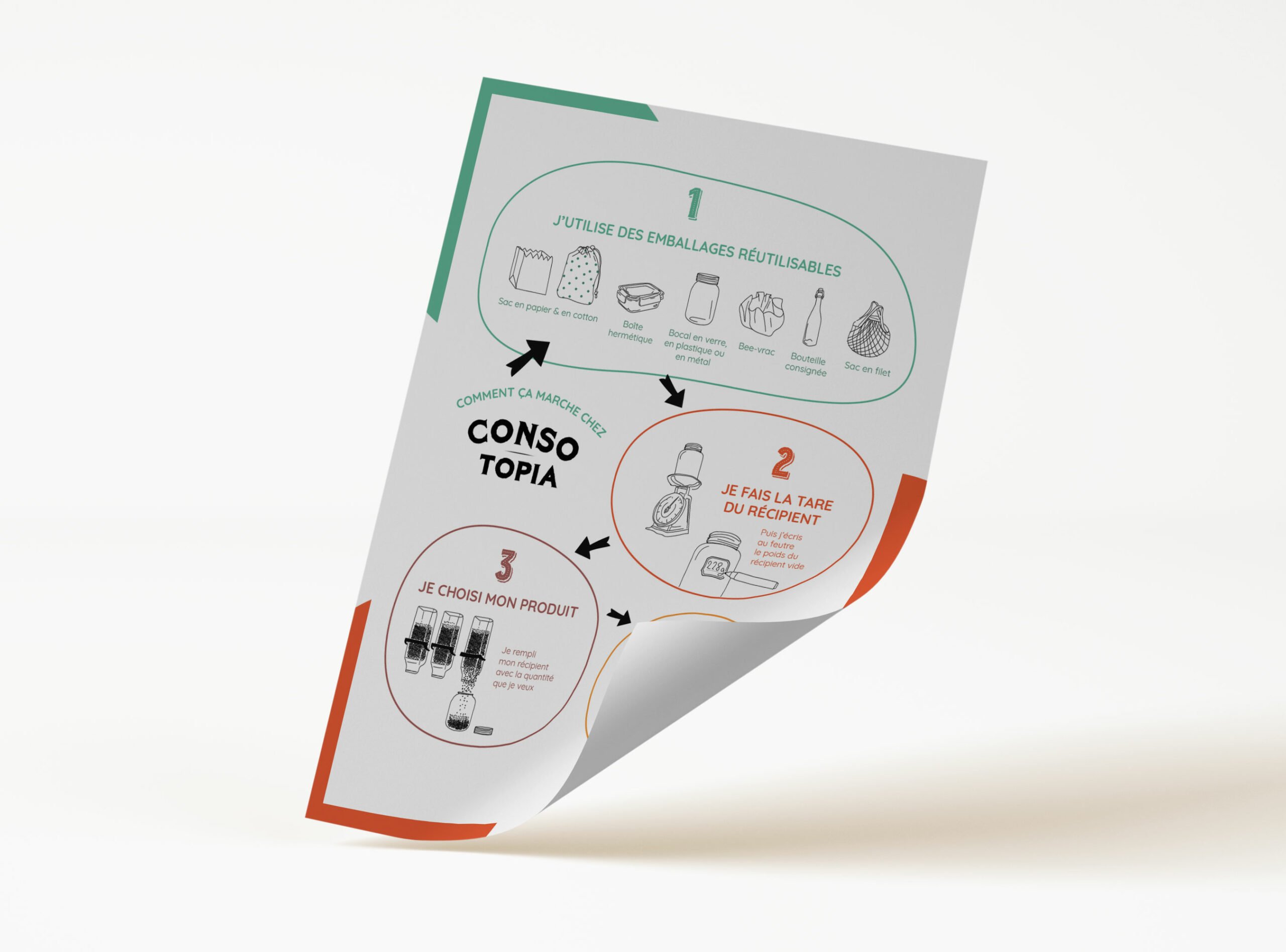 Réalisation du branding de Consotopia : de l’animation d’ateliers en intelligence collective pour trouver le nom de la boutique, au design du logo et de l’univers graphique de la marque.