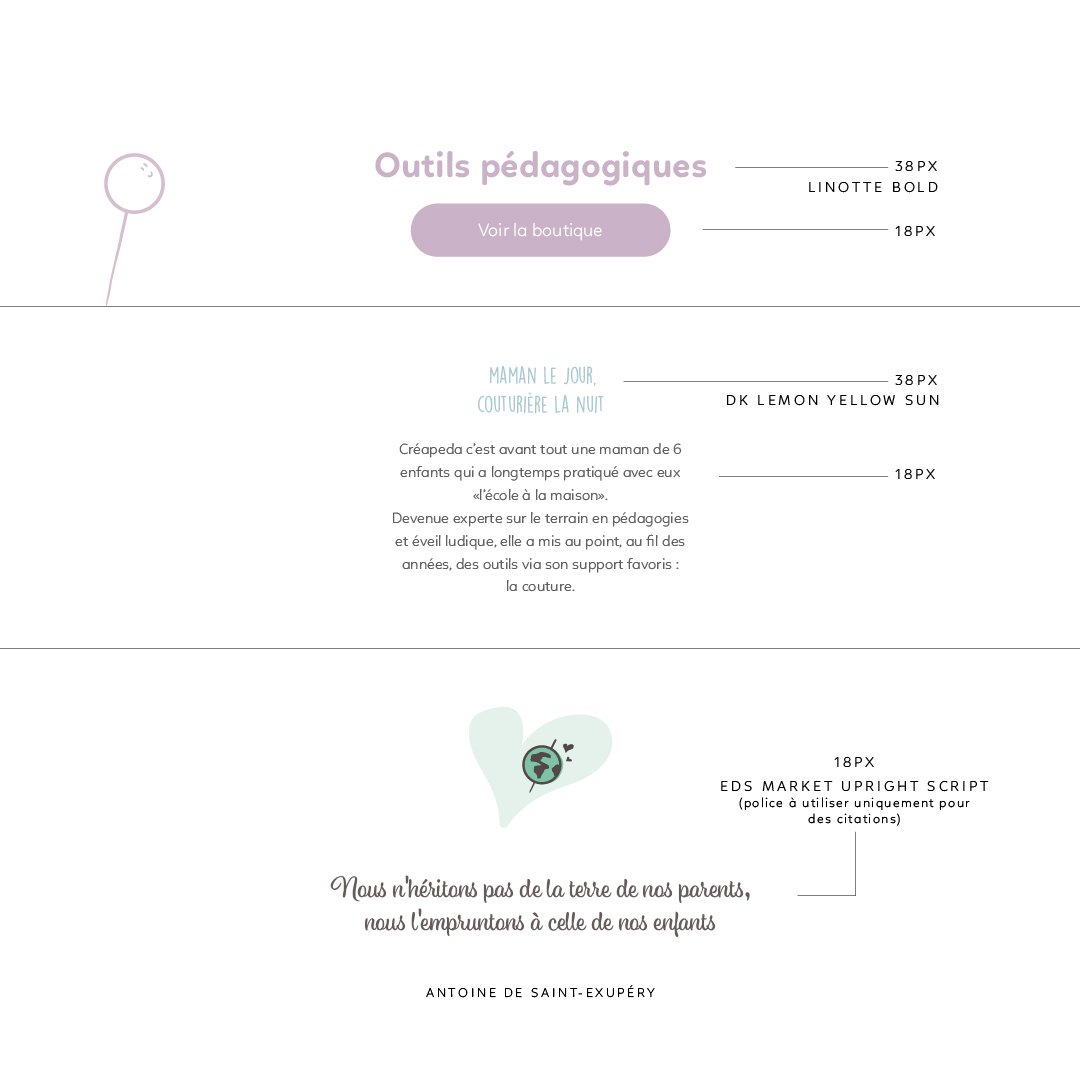 J’ai créé le logo de Créapeda, son identité visuelle, sa charte graphique et le web design de son site e-commerce.
