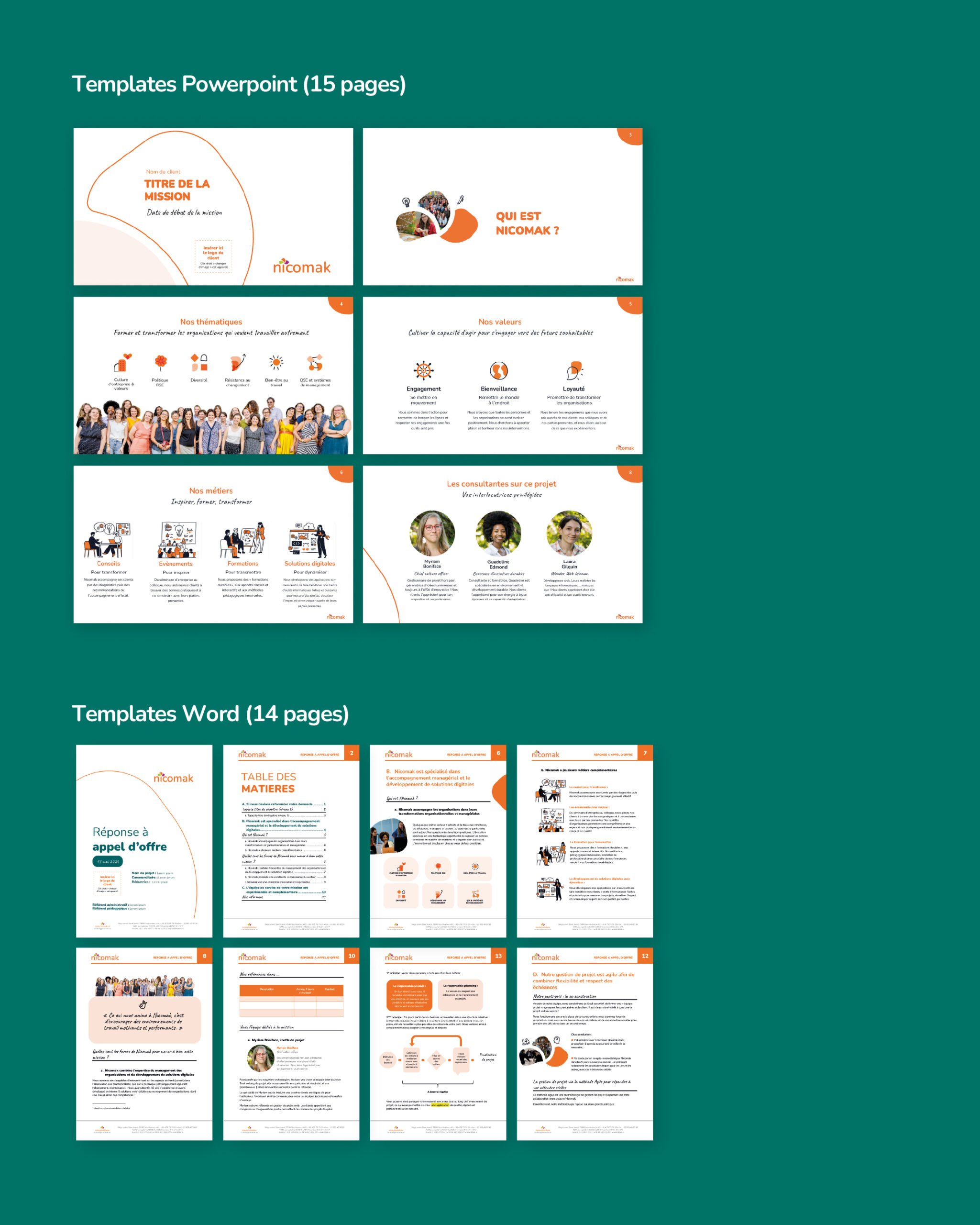 – Des templates pour leurs présentations Word et PowerPoint, compatibles avec GoogleDoc, GoogleSlide et Prezi.