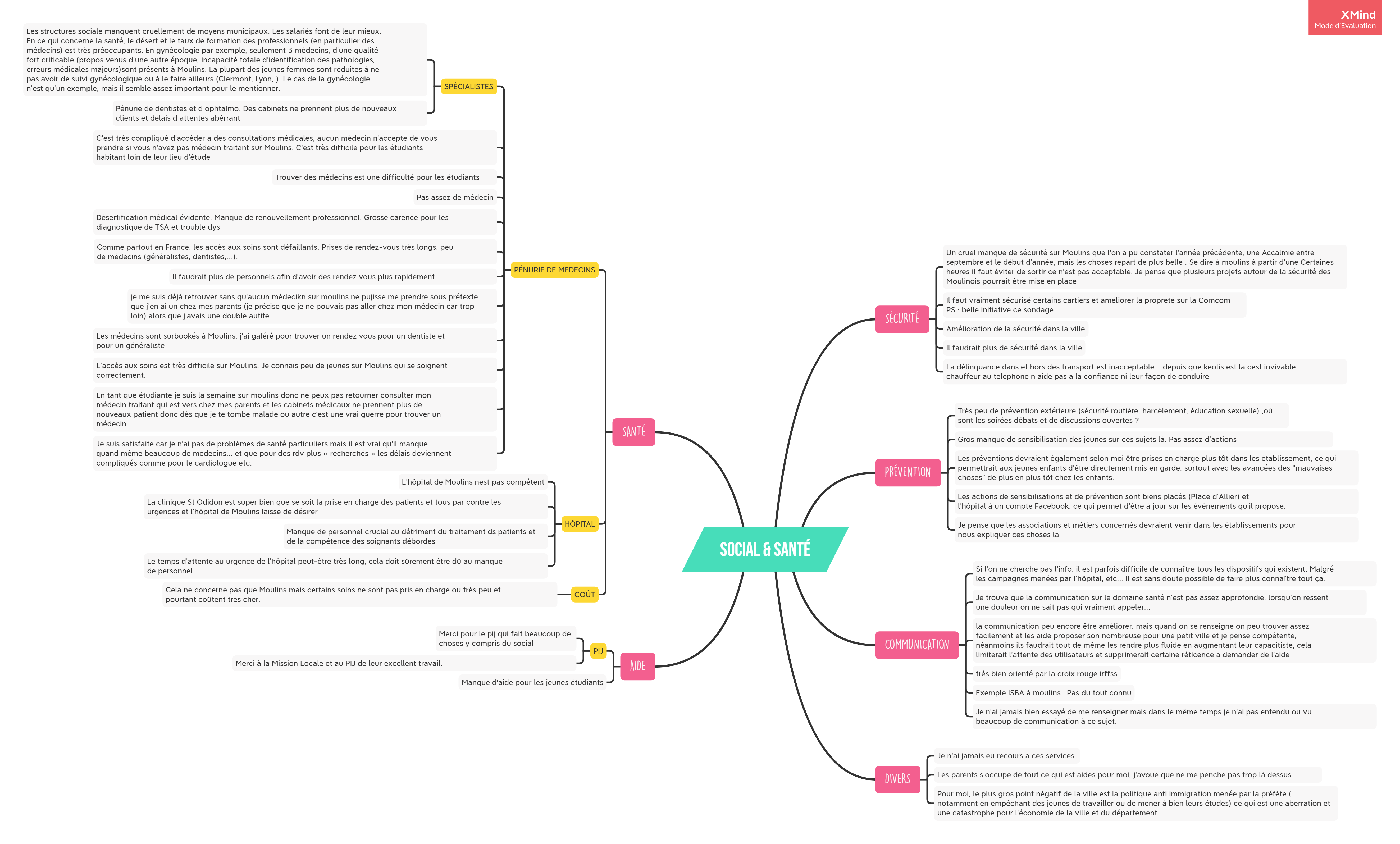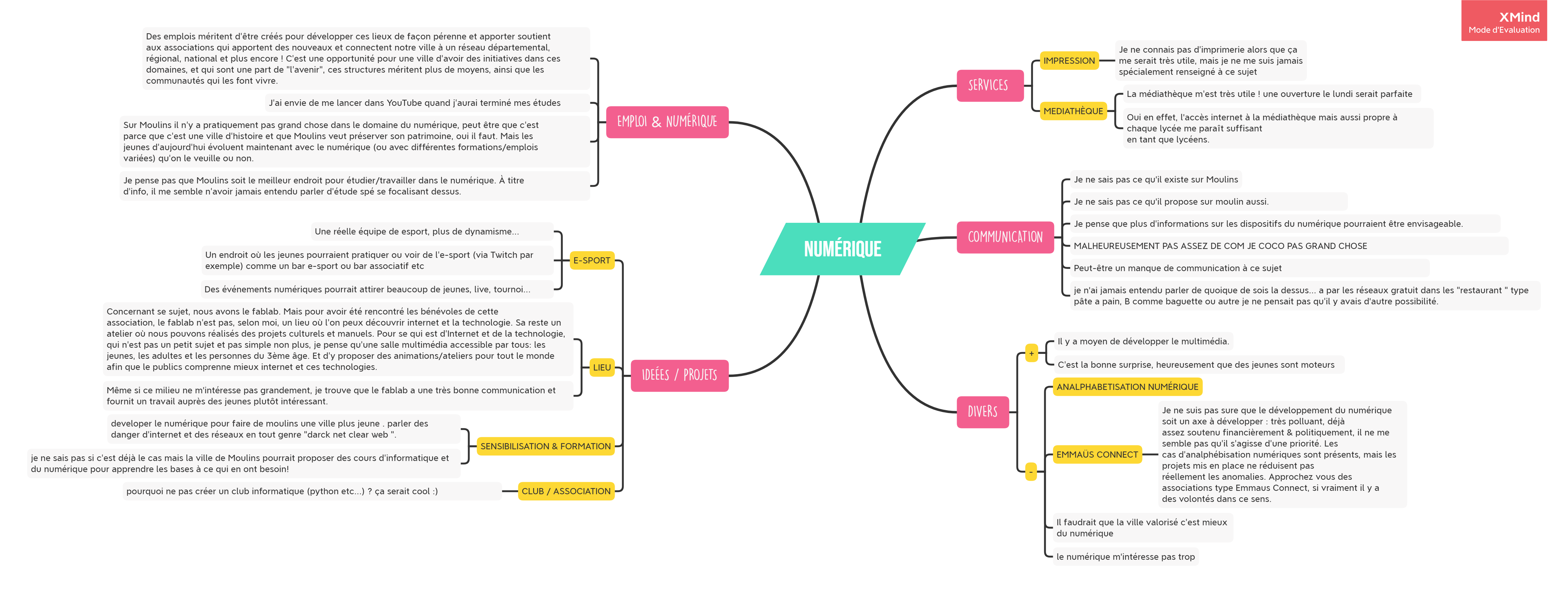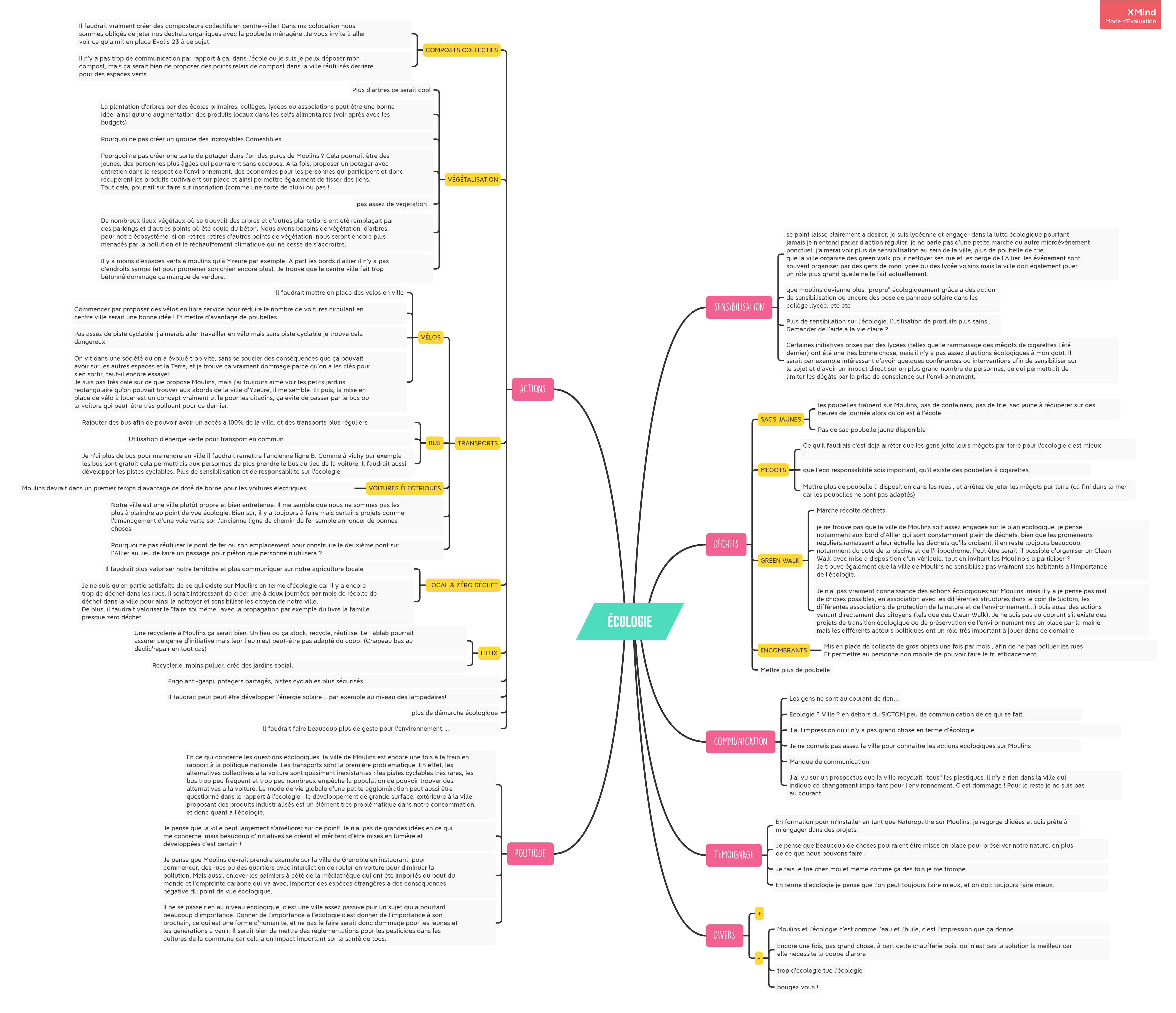 Organisation des réponses écrites au questionnaire en “mindmap”