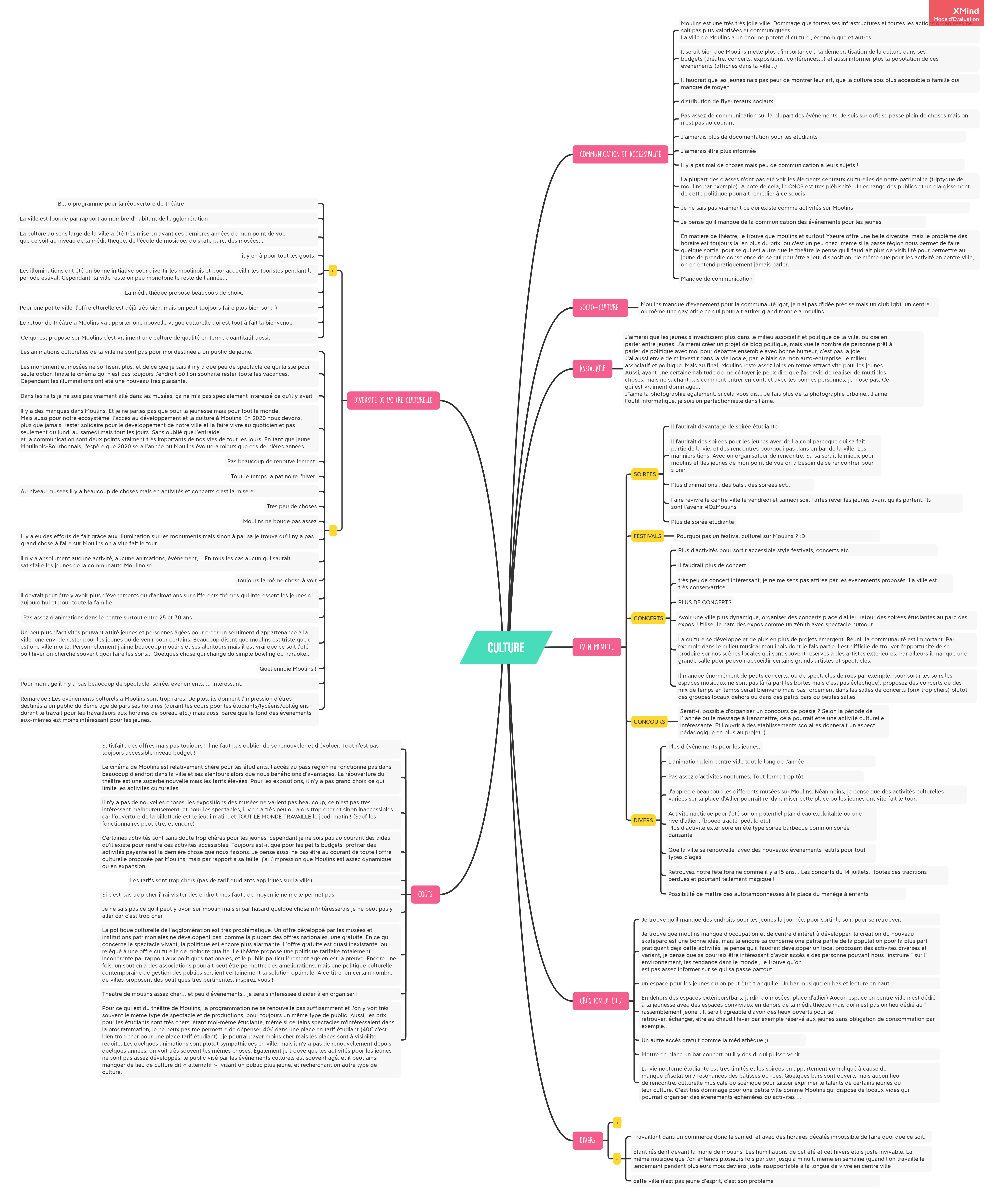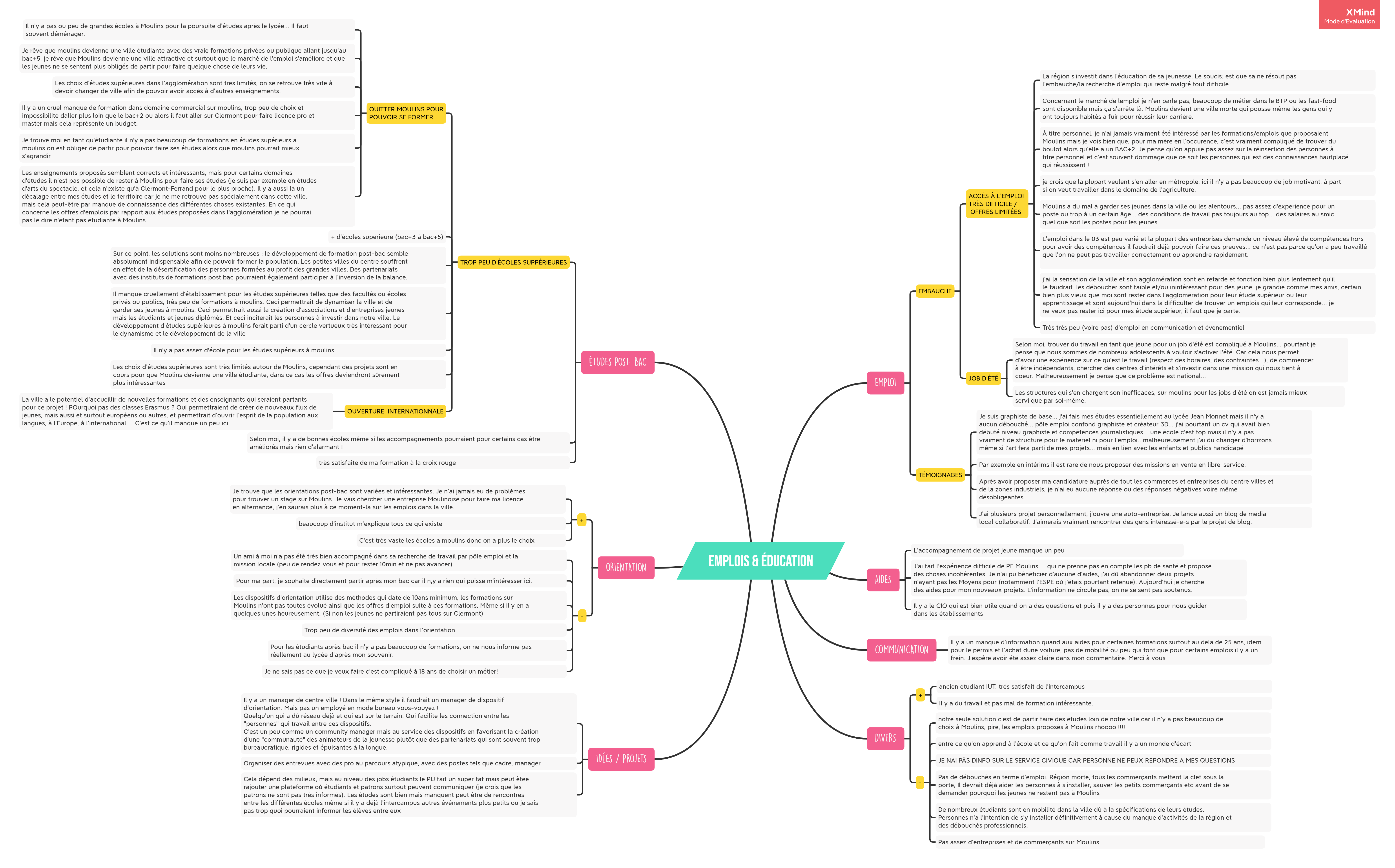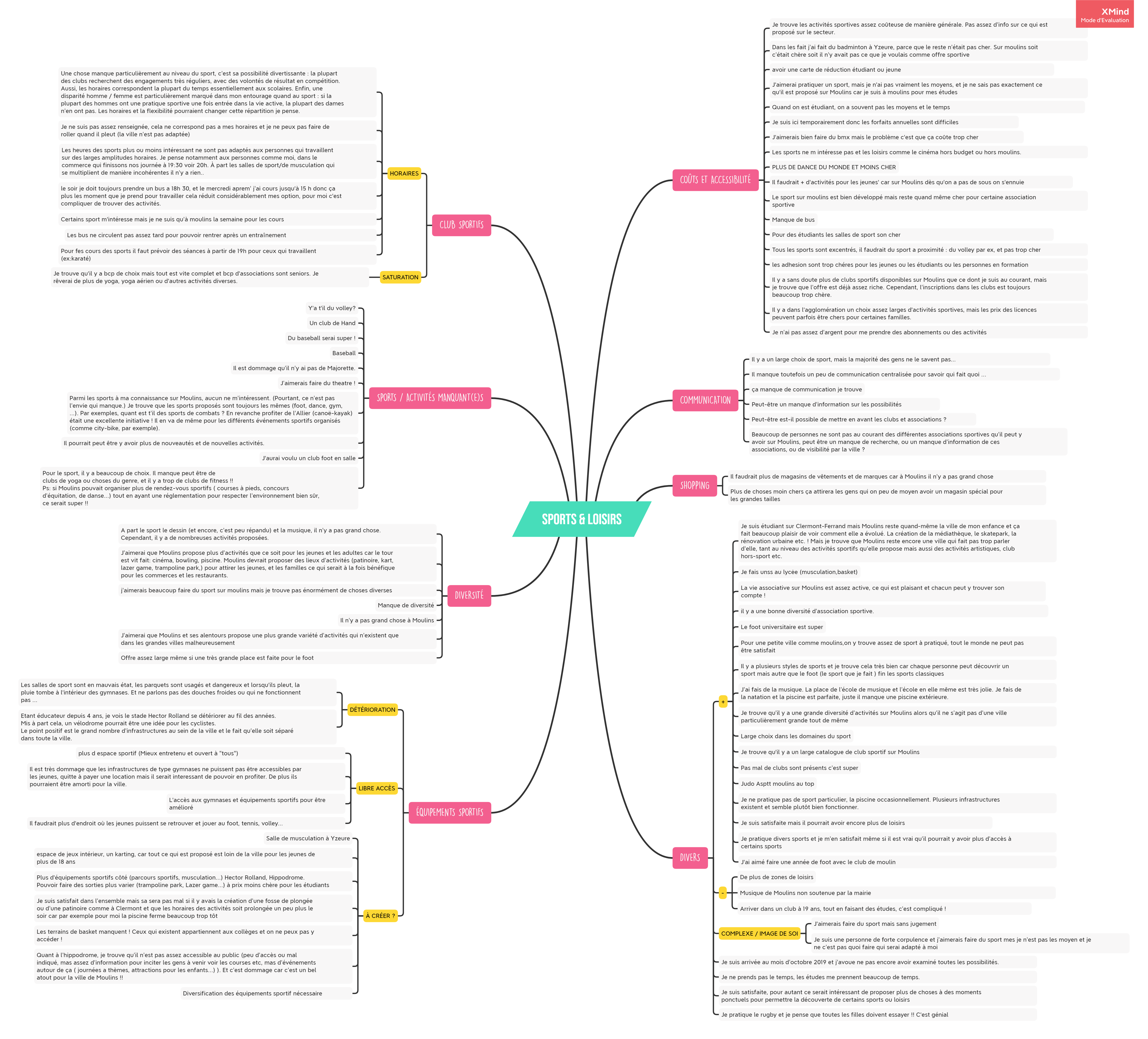Organisation des réponses écrites au questionnaire en “mindmap”