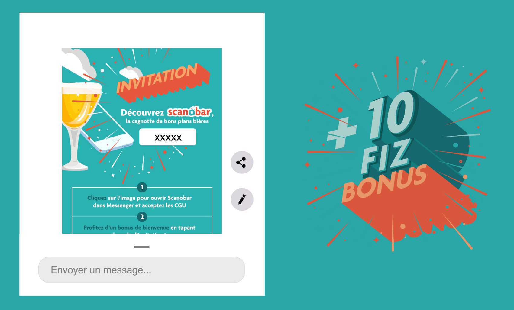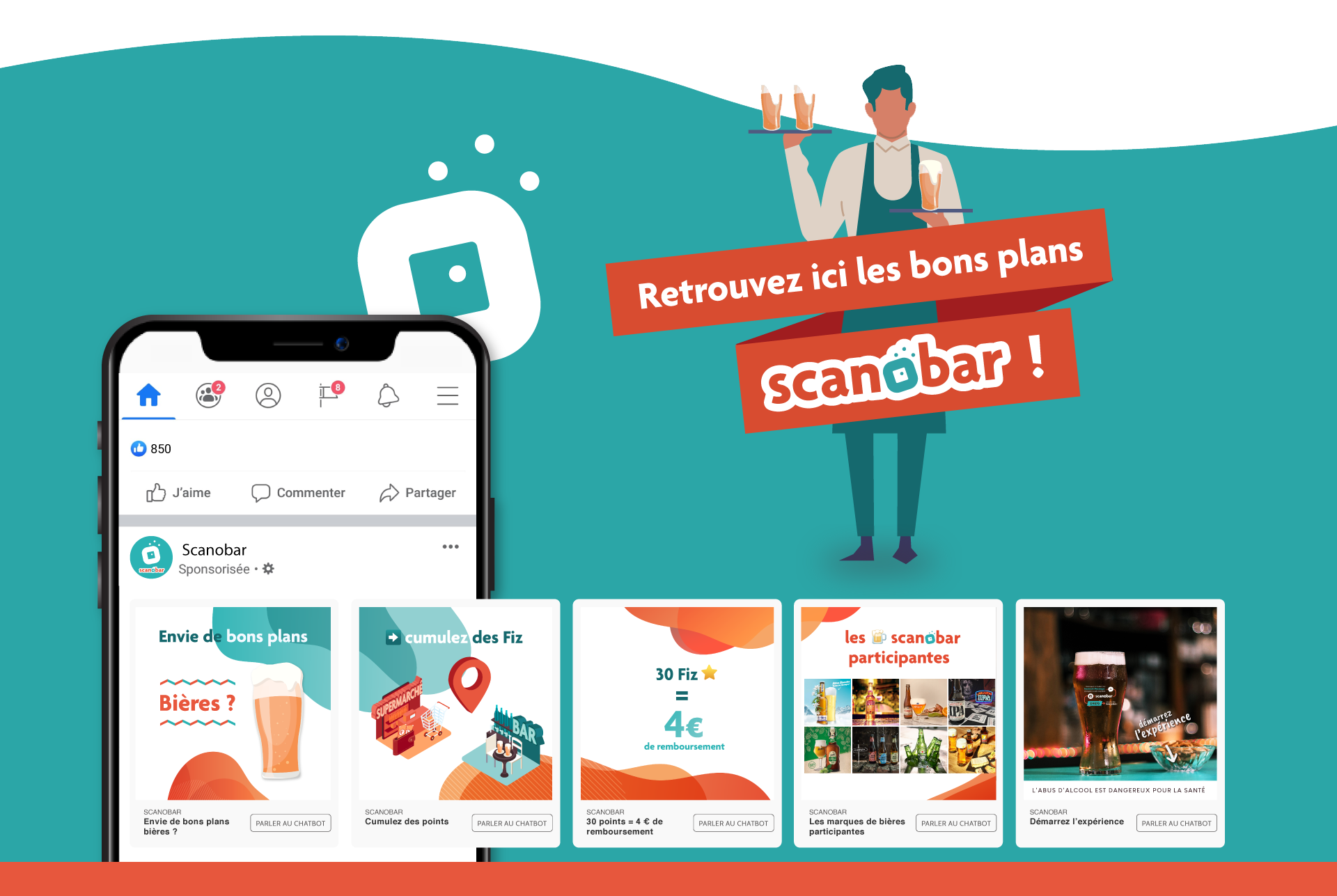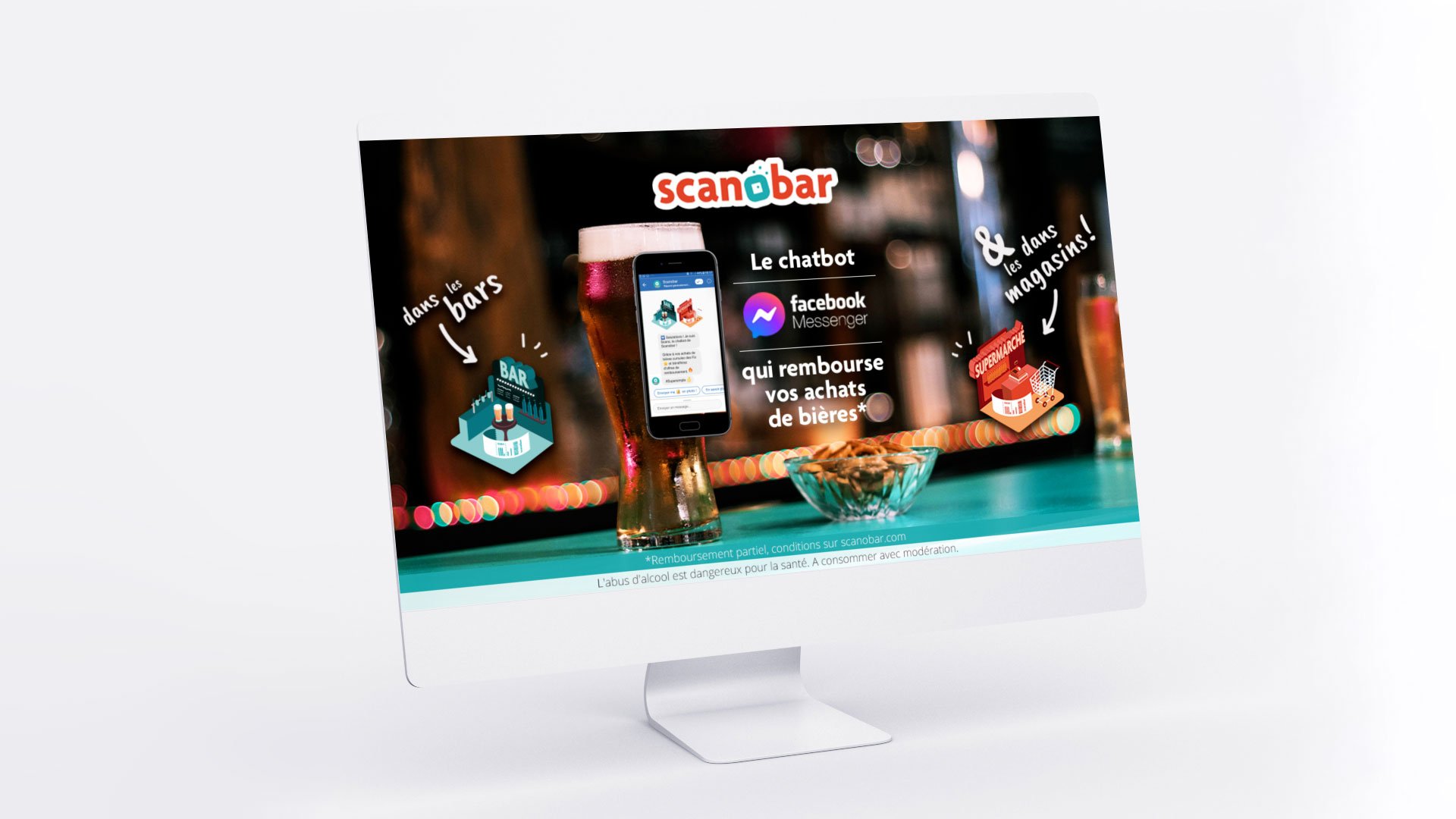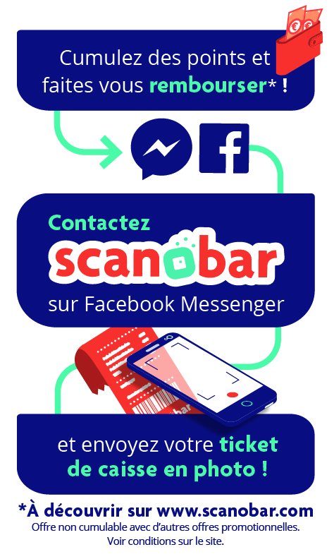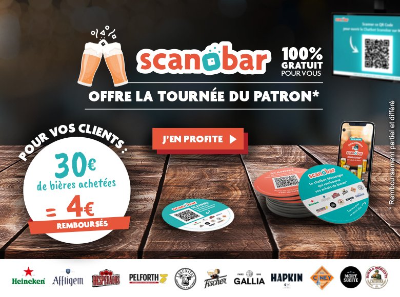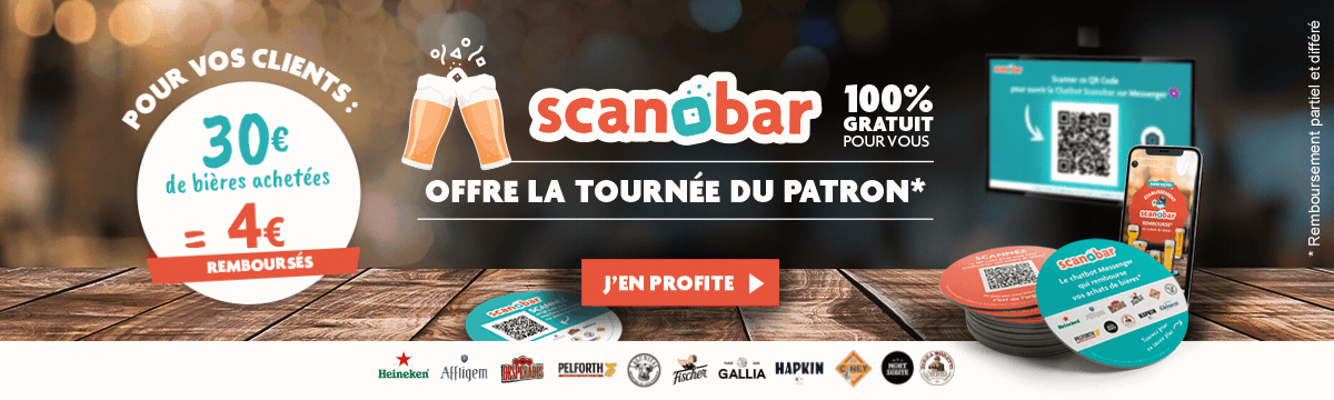 Scanobar était un chatbot Messenger élaboré par Heineken Entreprise. Ce robot conversationnel permettait aux consommateurs de bières de recevoir des offres de remboursement sur Paypal ou Lydia, en flashant leur ticket de caisse ou un code sur leur bière.